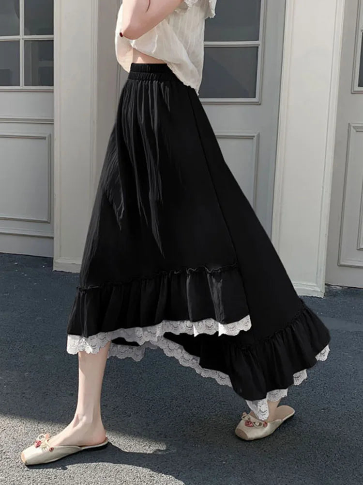 Irregular Pink Lace Patchwork Skirt